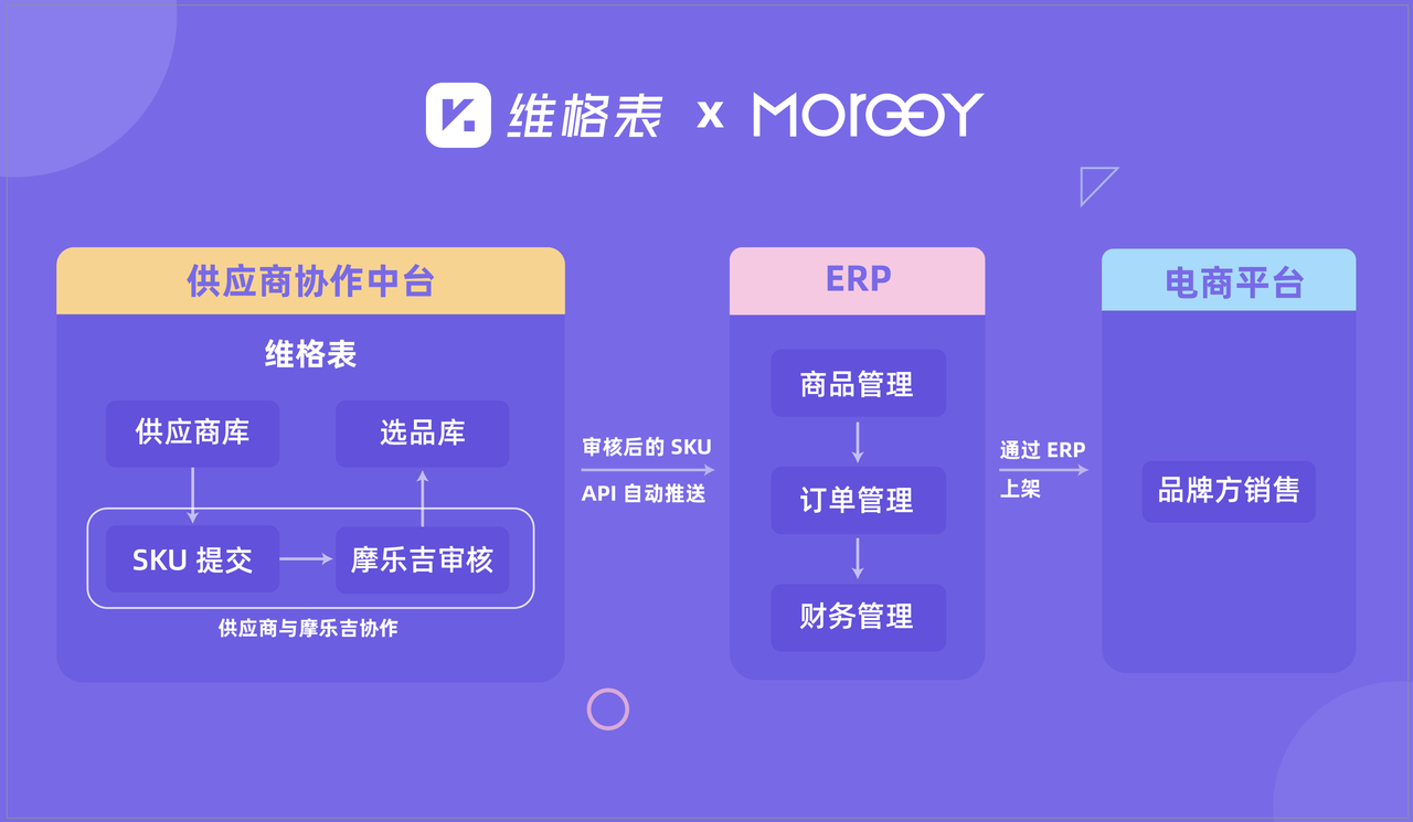 实际操作上,一线的同事只需要用一个链接+镜像就可以生成几百个供应商的协作库,供应商自行录入商品信息,摩乐吉的工作只需要进行信息规范审核,商品就可以定时推送到 ERP 。