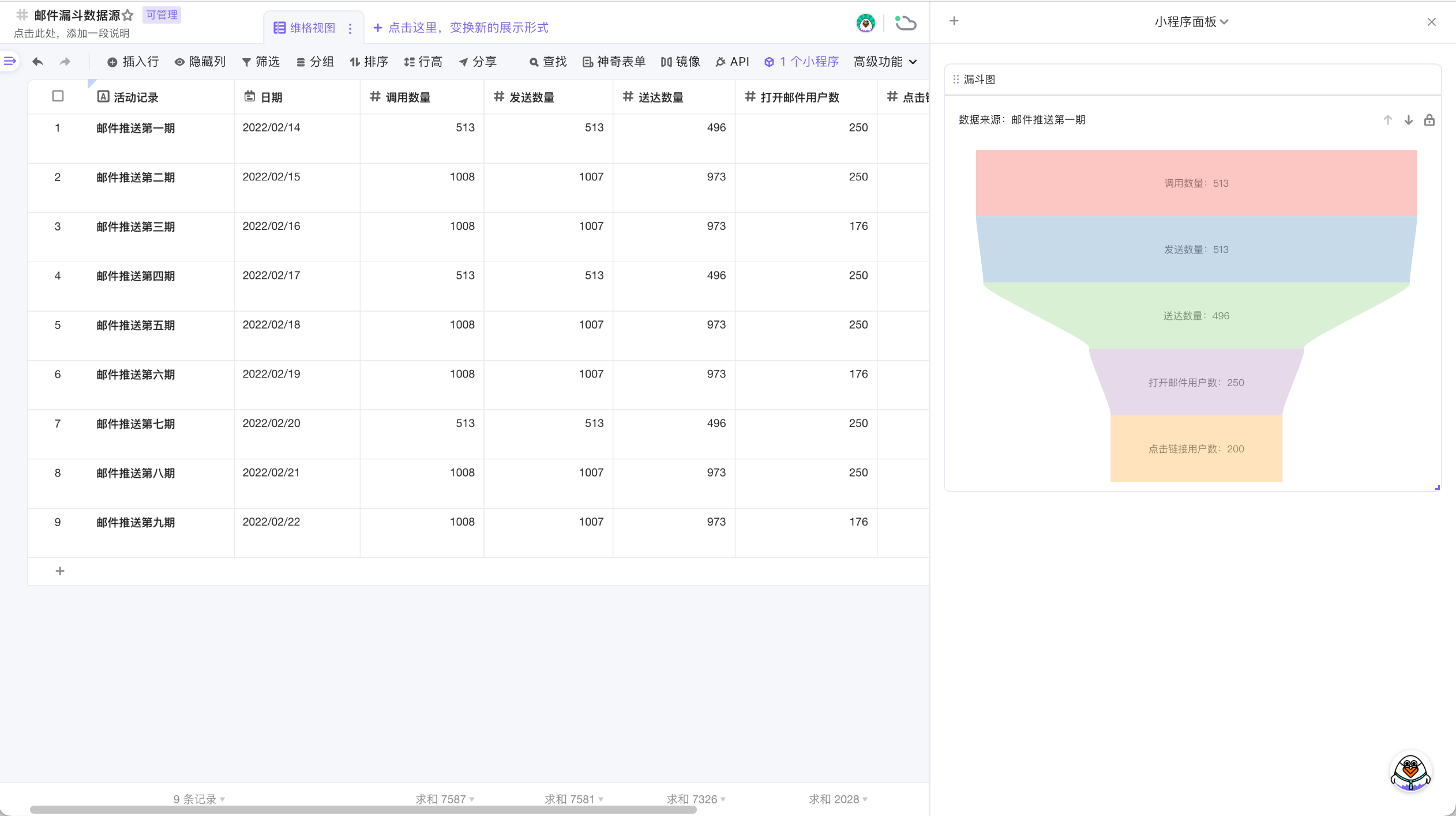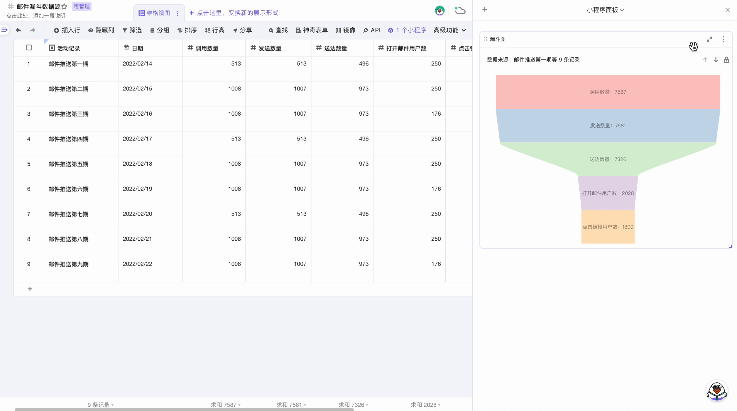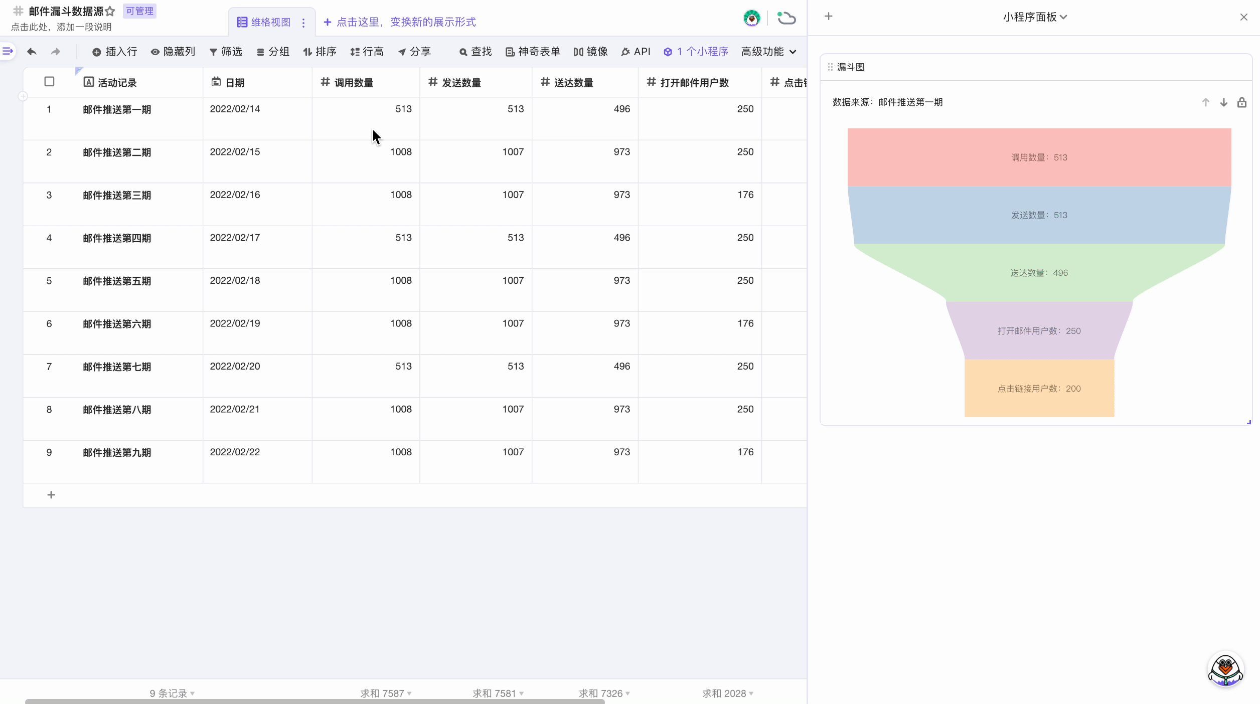 你可以点击单元格,系统会将该行记录渲染为漏斗图;你也可以框选多行,系统会多行数据求和后渲染成漏斗图。