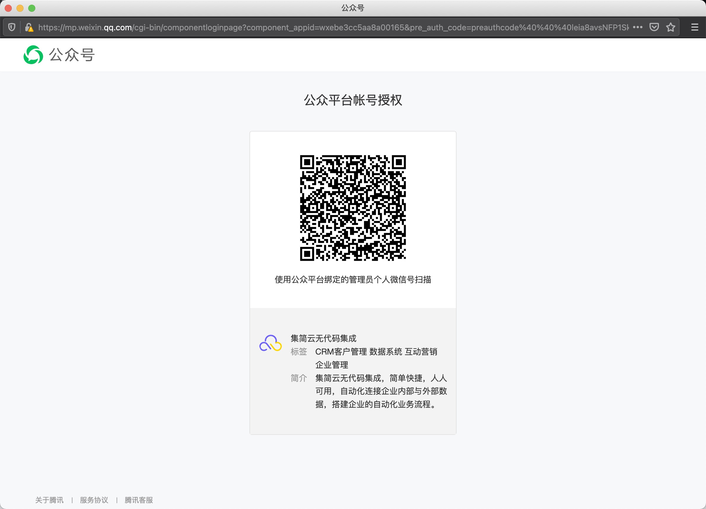 (注意:添加微信公众号帐号时,必须公众号管理员扫码授权)